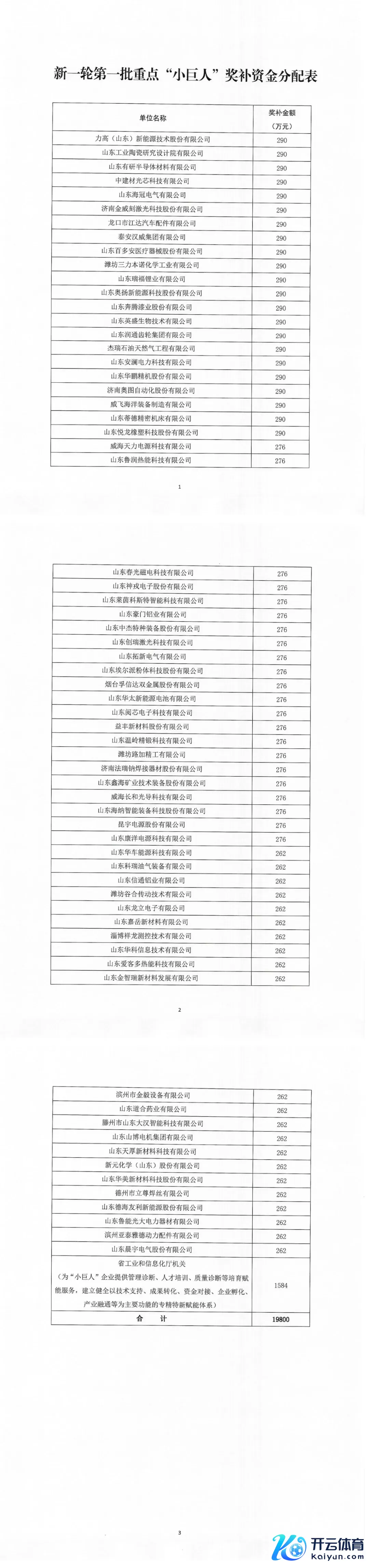 把柄《财政部 工业和信息化部对于进一步营救专精特新中小企业高质地发展的奉告》(财建〔2024〕148号)及资金使用关联规定,现将我省新一轮第一批重心“小巨东说念主”企业奖补资金分拨决策给予公示。 公示期自2024年11月13日至11月17日,共5天。对公示骨子如有异议,请在公示期内向省工业和信息化厅反馈。个东说念主反馈请提供确切姓名及相关形式,单元反馈请加盖公章。 相关电话:0531-51782520 邮箱:zxqy@shandong.cn 附件:新一轮第一批重心“小巨东说念主”奖补资金分拨表