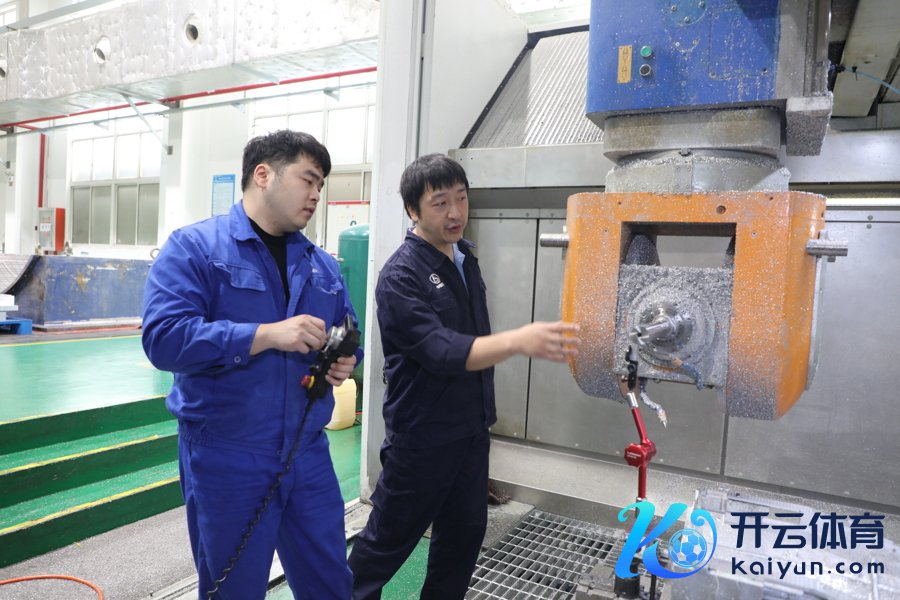 大型数控加工确立前,上海航天800所两名技能工东谈主专注地调试测量安设,确保加工精度。