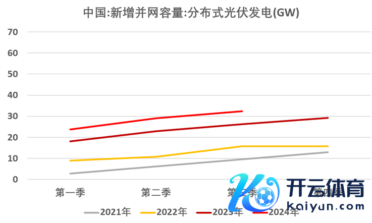图9 2024年我国散布式光伏发电与组件出口估算值(单元:GW)