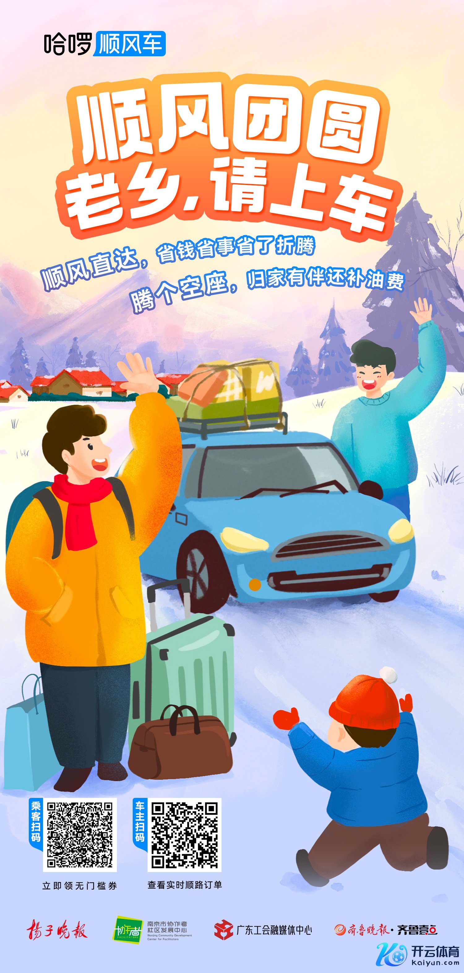 又是一年春运时。扬子晚报联袂哈啰顺风车,与皆鲁晚报、广东省总工会工会、南京市和解者社区发展中心,重磅发起“顺风团圆·老乡,请上车”春运公益手脚。免费送南京的办事者和他们的子女回故土与亲东谈主蚁集。扬子晚报也会纠合哈啰顺风车为务工者奉上礼包。小娟是一位二胎宝妈,但她也莫得烧毁培植我方,24年底刚又拿了情绪洽商师证。她说:“春运其实是爱迸发的本事,咱们对父母的爱,让咱们不远千里赶且归;父母早早杀鸡宰羊准备好饭菜,对咱们翘首以盼……包括春运路上彼此匡助的每个东谈主,包括哈啰顺风车,都在爱的频率下共振