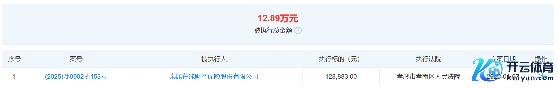 另据天眼查网站,近日,寿康在线新增一则被践诺东说念主信息,践诺办法12.89万元开yun体育网,践诺法院为湖北省孝感市孝南区东说念主民法院。